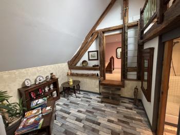 Jolie maison ancienne comprenant au rez-de-chaussée : entrée, séjour-salon env 34M² avec cheminée, cuisine env 11M² , chambre env 12M² , salle de bains, wc, chaufferie. Au 1er étage : grand palier (possibilité bureau) , 2 chambres .